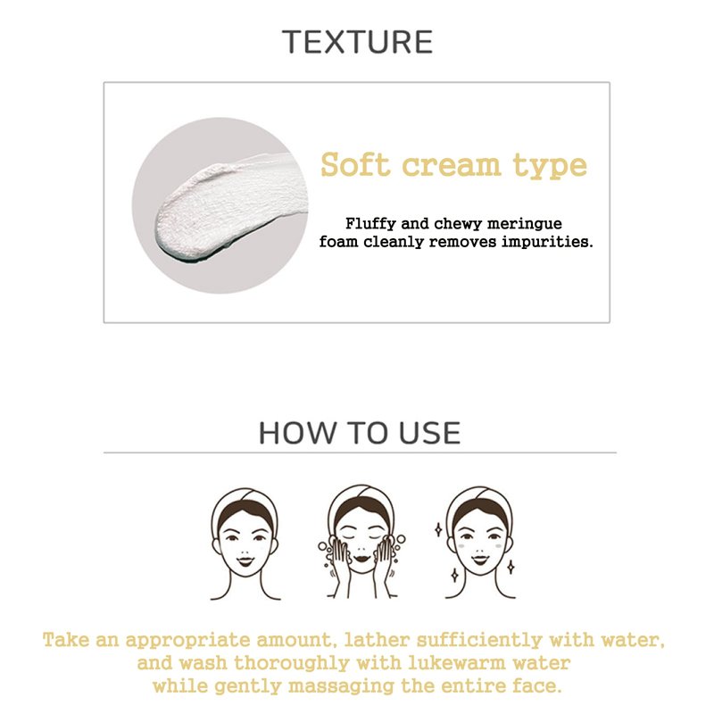 The vibrant egg tightening cleansing foam and chewy meringue foam thoroughly cleanse impurities in pores.