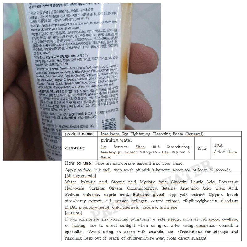 PRIMING WATER Kwailnara Egg Tightening Cleansing Foam (Renewal), Skin Moisturizing and Pore Care Cleansing Foam 130g/4.58oz
