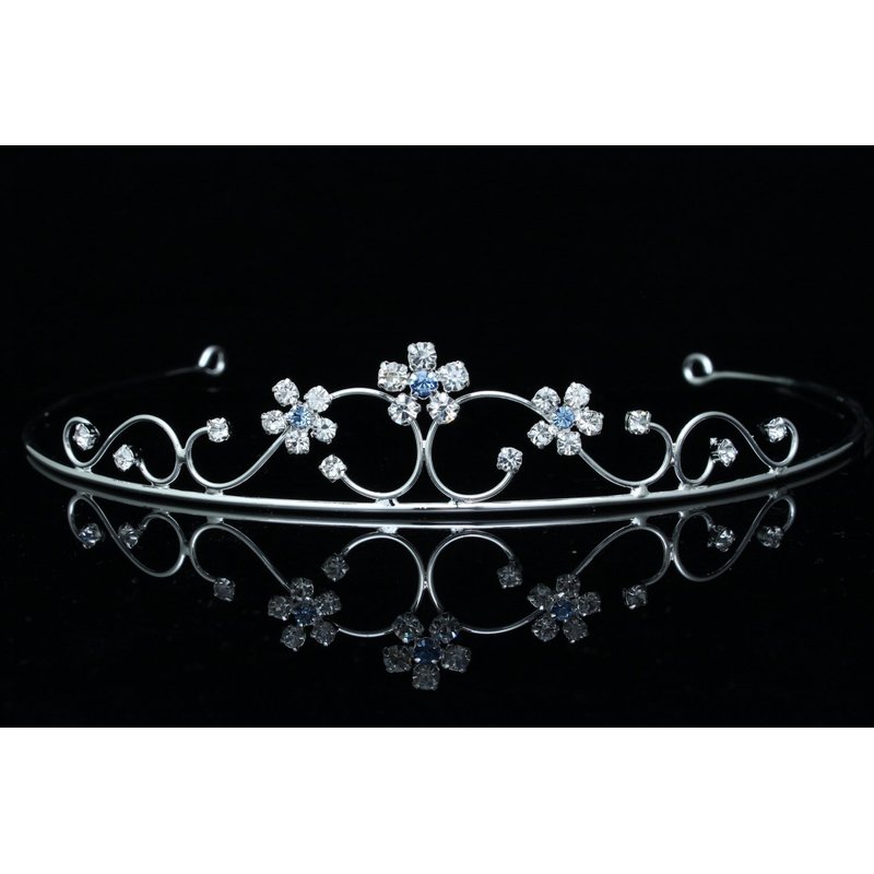 Princess Bridesmaid Flower Girl Rhinestone Crystal Tiara (Blue Crystals Silver Plated) T460