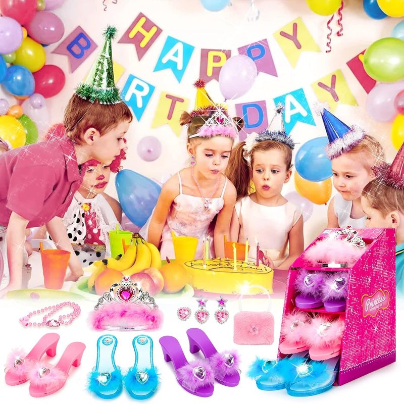 - Princess Toys for Birthday, Christmas for Your Little Princess: Glittery glamorous princess shoes and dangling jewelry makes girls feel like a princess and boost their confidence among friends and family. Our princess set perfect gift exclusively for your girls aged 3,4,5,6 years old which help build their self-confidence, cultivate aesthetic awareness and improve imagination ability