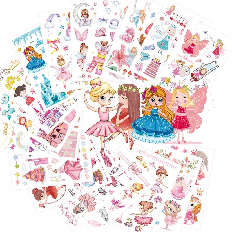 - Package Includes: 18 sheets glitter ballet princess temporary tattoos for kids little girls, size: 2.96"*4.72"/sheet. Any questions or concerns will be responded within 24 hours.