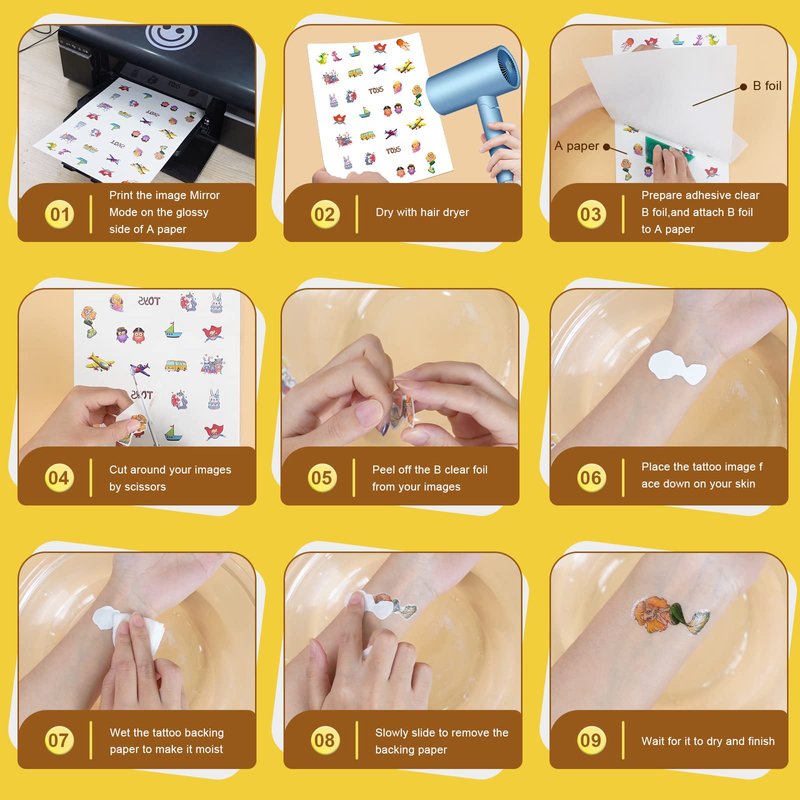 Printable Temporary Tattoo Paper for Inkjet Printer - 8.5"X11", 20 SHEETS - DIY Personalized Image Transfer Sheet for skin