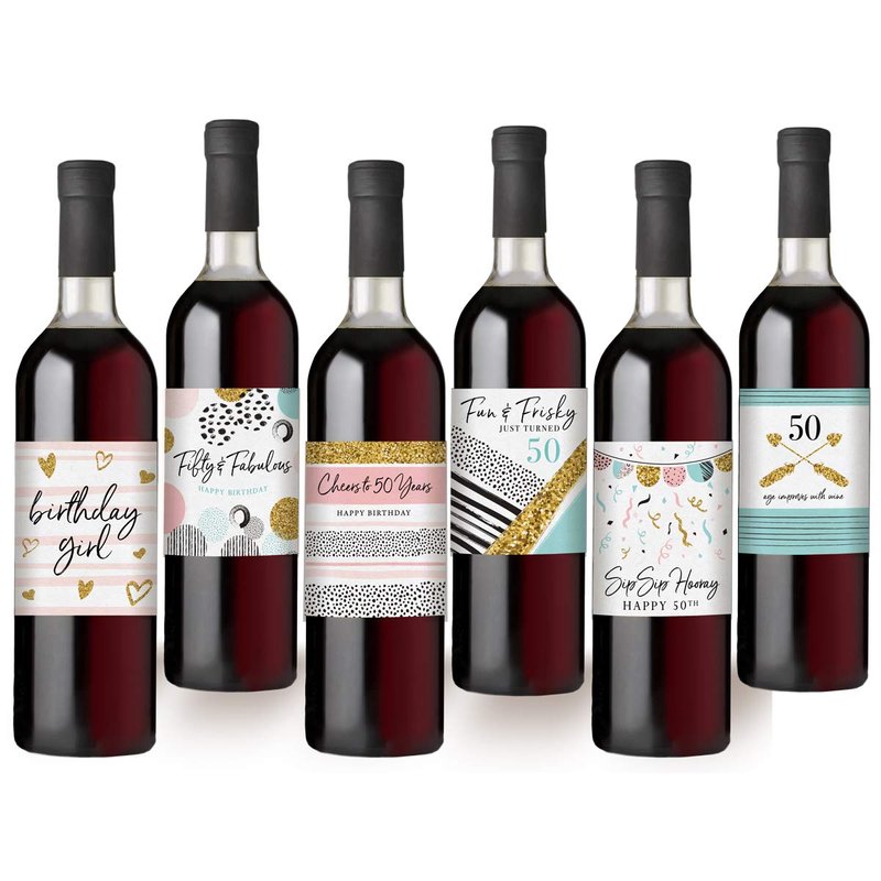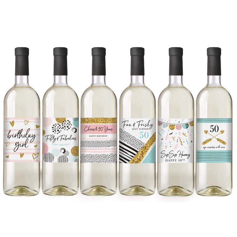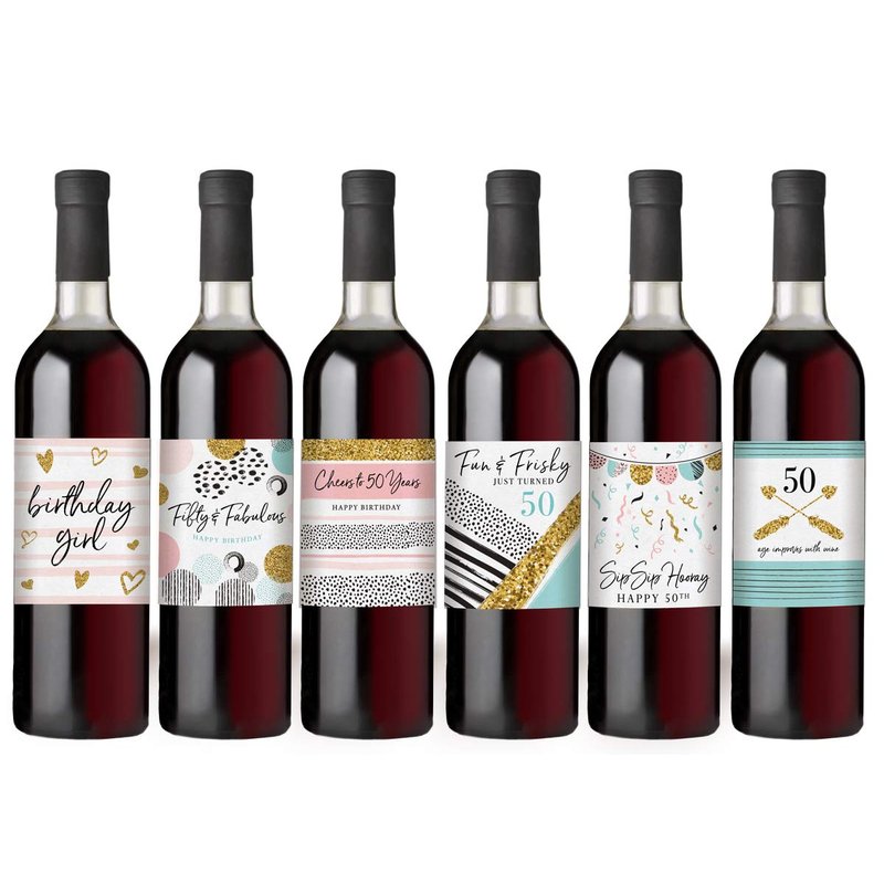 - 50th Birthday Wine Bottle Labels - celebrate a milestone with 6 unique wine bottle lables