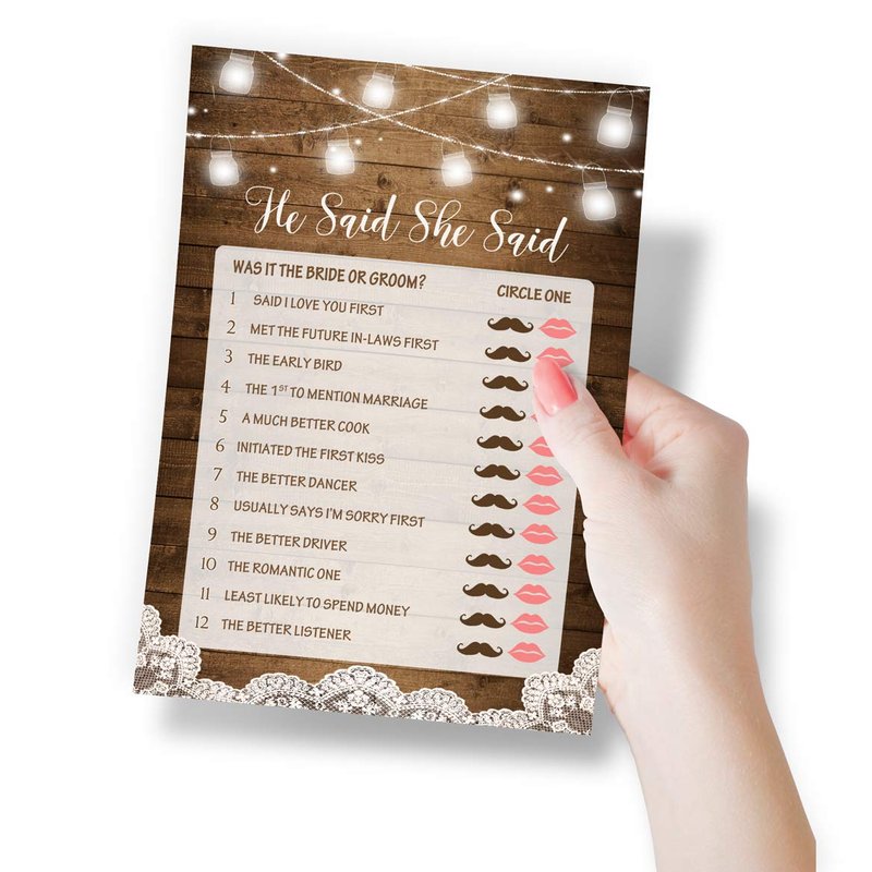 - 5 Activities - Emoji Pictionary, Bridal Bingo, Advice & Wishes, He Said She Said, and a Candy Kisses guessing game