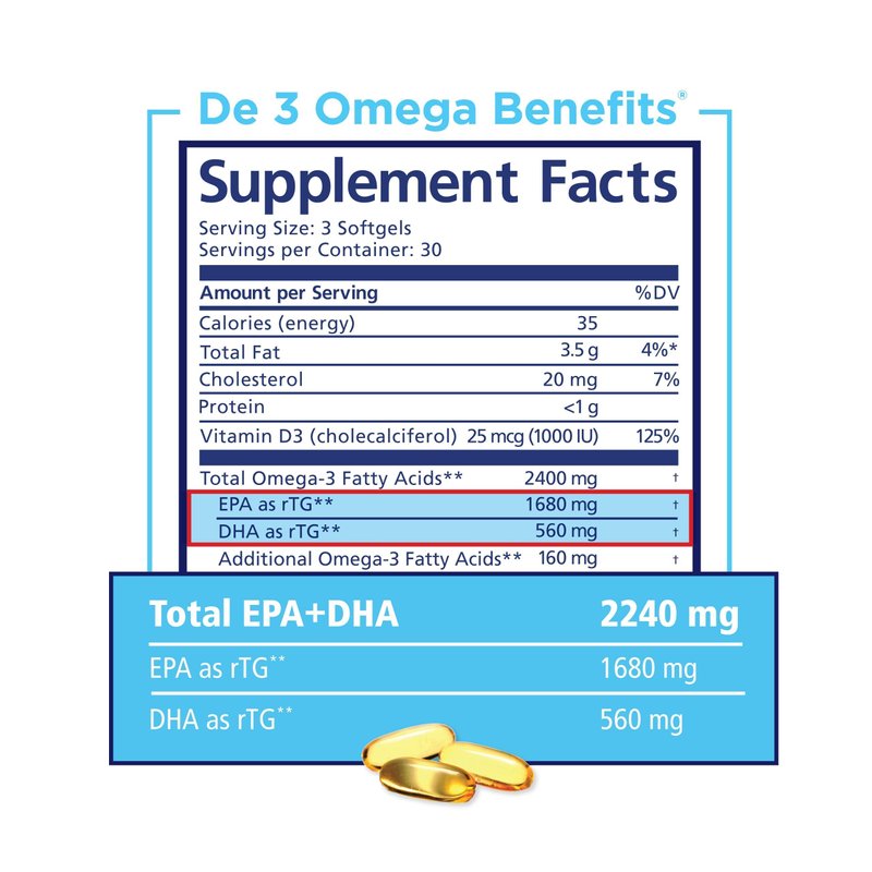 - FOR DRY OR IRRITATED EYES: A clinical study has shown that taking 2240mg of EPA/DHA in the re-esterified triglyceride form (rTG) for 90 days may results in improvement of occasional dry eye discomfort such as grittiness, dryness, and burning.