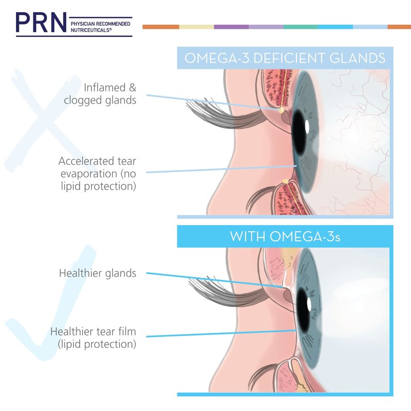 - DOCTOR RECOMMENDED: PRN is a leader in the advancement of specialty Omega-3 products which are developed by doctors and supported by a comprehensive body of clinical evidence. Thousands of top physicians across the country recommend the use of PRN products versus other over-the-counter Omega-3s. More than 4,000 ophthalmologists and optometrists recommend PRN products to their patients for dry or irritated eyes and support of healthy macular function.