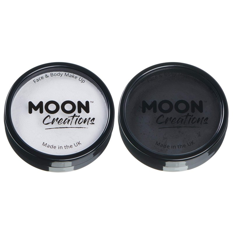 Pro Face & Body Paint Cake Pots by Moon Creations - Monochrome Colours Set - Professional Water Based Face Paint Makeup for Adults, Kids - 1.26oz