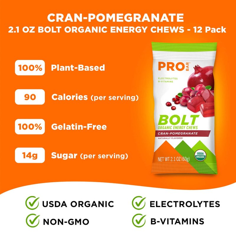 PROBAR - BOLT Organic Energy Chews, Cranberry Pomegranate, Non-GMO, Gluten-Free, USDA Certified Organic, Healthy, Natural Energy, Fast Fuel Gummies with Vitamins B & C (12 Count)