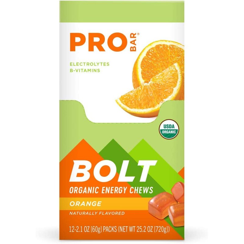 PROBAR - BOLT Organic Energy Chews - Orange - USDA Organic, Gluten-Free, Superfruit Blend, Electrolytes, B Vitamins - Pack of 12