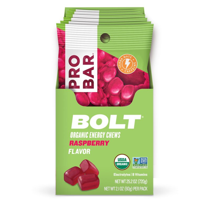 PROBAR Bolt Organic Energy Chews, Raspberry, 2.1 oz (Pack of 12)