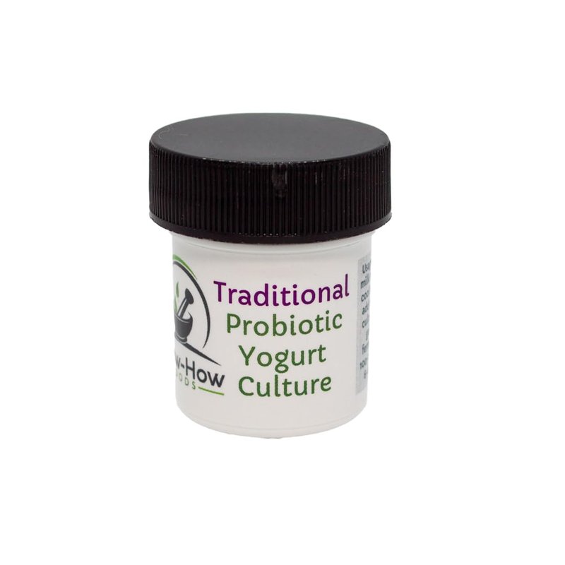 Probiotic Full Flavor Yogurt Starter Culture from Know-How Foods produces a probiotic yogurt with traditional full yogurt flavor (slightly tart) and medium body. Slight post acidification. This culture has a 7-8 hour set time when used in pasteurized cow milk. Set times will be somewhat longer in unpasteurized and/or goat milk. Contains: Streptococcus thermophilus; Lactobacillus delbrueckii subsp. bulgaricus; Lactobacillus acidophilus; Bifidobacterium lactis