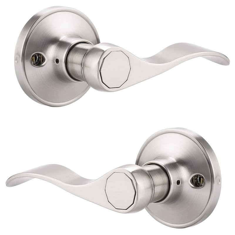 Probrico Pack of Two Dummy Door Lever for Left Hand and Right Hand Brushed Nickel Interior Door Handle Wave Style Non-Turning Door Knob Stainless Steel