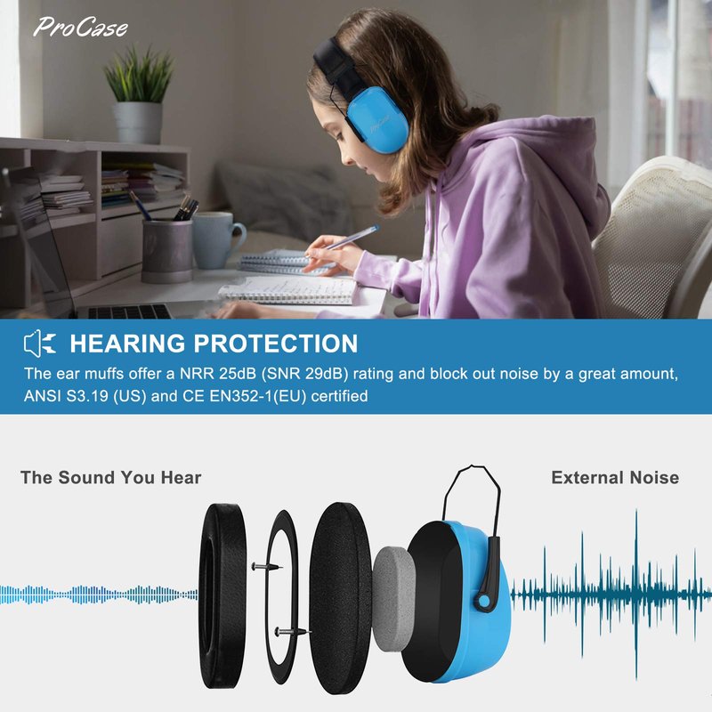 ProCase Kids Ear Protection, SNR 29 dB Noise Cancelling Headphones for Autism Children Toddler, Sound Proof Noise Reduction Earmuffs for Fireworks, Flight, Concert -Blue