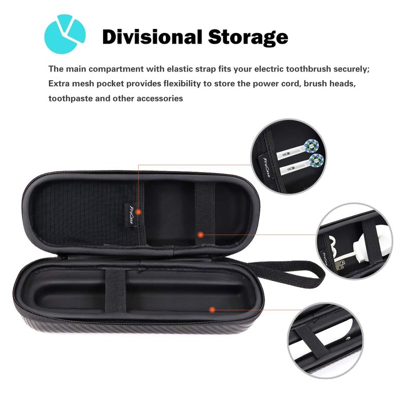 - The main compartment with elastic strap fits your electric toothbrush securely; Extra mesh pocket provides flexibility to store the power cord, brush heads, toothpaste and other accessories