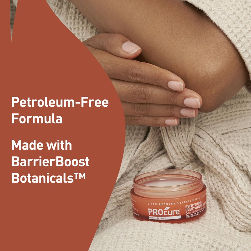 PROcure Everything Everywhere Balm petroleum-free & fragrance-free formula deeply locks in moisture for soothing relief wherever you need, from dry skin to cracked cuticles to parched lips and more! Combines the science of hydrating Vitamin E with our soothing botanical blend of Shea Butter, Castor, & Coconut Oils. Dermatologist-tested & safe to use on all skin types.