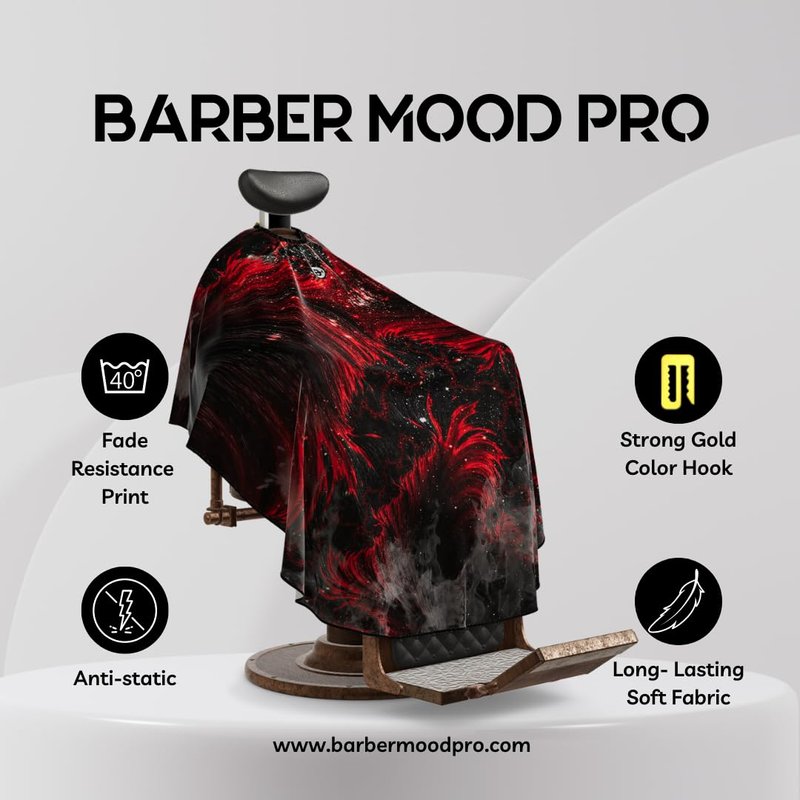 Discover the essence of quality and innovation with Barber Mood's premium barber capes. Each cape measures a generous 160cm x 140cm, providing ample coverage for a variety of clients. Designed with a smart collar and secured by fine neck fastening with unbreakable hooks, our capes ensure a comfortable fit and ease of use during every grooming session. Our barber capes are crafted with advanced materials that ensure a superior grooming experience. Designed to be anti-static and resistant to hair sticking, our capes not only minimize static electricity during haircuts but also effortlessly repel hair, keeping it from clinging to the fabric. This dual feature not only enhances client comfort by reducing discomfort and distractions but also facilitates easier cleanup, making our capes an essential choice for professional barbershops and salons where cleanliness and efficiency are paramount.