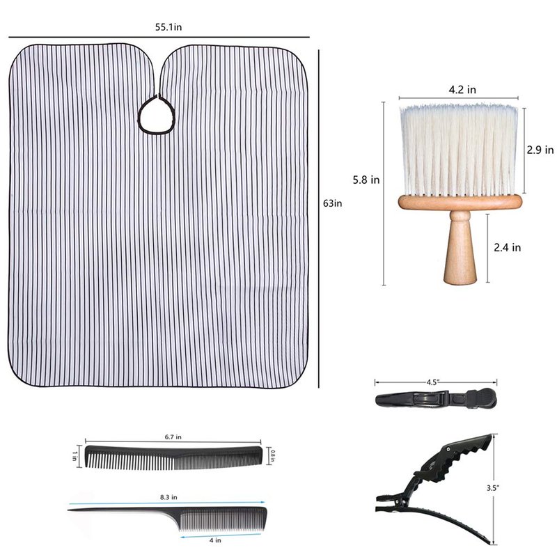 Professional Barber Cape with Adjustable Metal Clip Hair Cutting Cape Haircut Cape Salon Cape Hairdressing Cape Neck Duster Brush Hair Comb Hair Clips Set