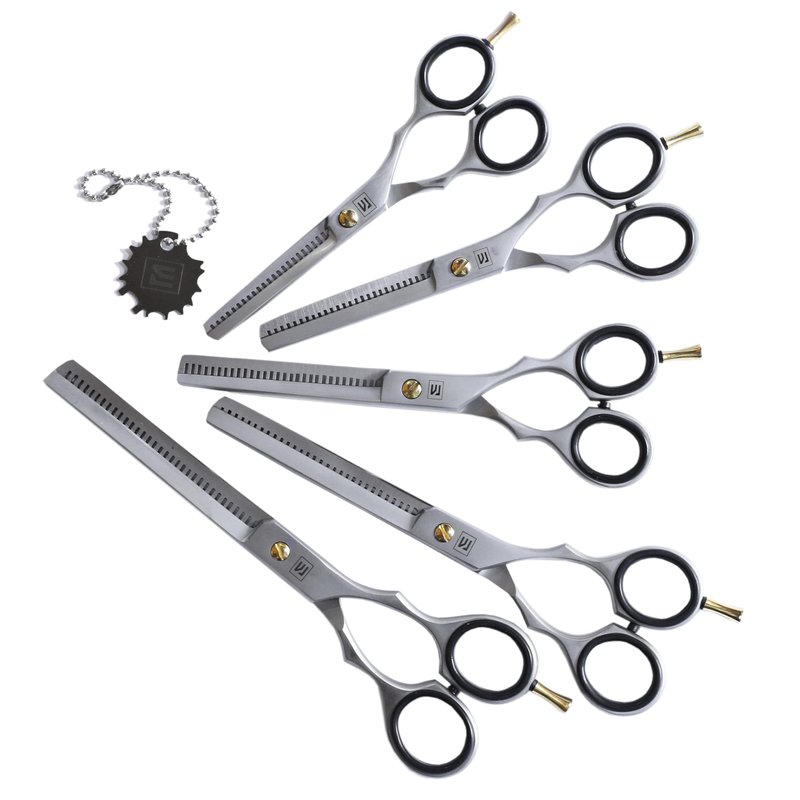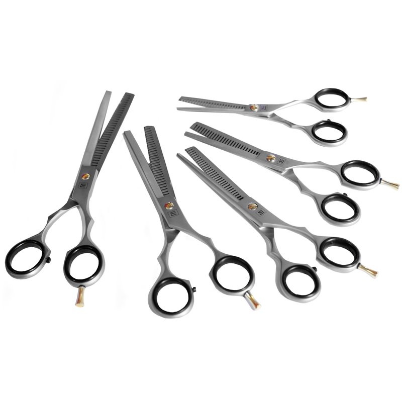 - 1. Precision Hair Thinning for Professional: Achieve flawless, salon-quality haircuts with this hair thinning scissors set, Designed for both home and professional use, 5 scissors set ( 5, 5.5, 6, 6.6, 7 Inch) ensures precise trimming, blending, and texturizing, making it an essential tool for any stylist's kit.