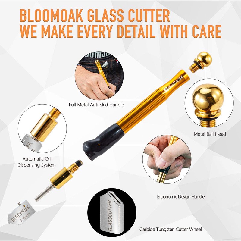 - ⛏【Self-Oiling System】: The glass cutter is self-oiling, when pressure is applied, oil automatically flows with the oil dispensing system and keeps blade lubricated every time you cut. Please note that the kit doesn't contain oil and need to buy seperately