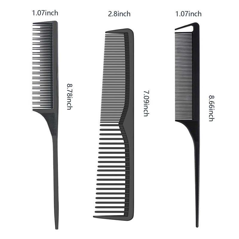 This is a high quality, professional, and affordable hair styling comb set. The comb set is made of high quality carbon fiber materials and is heat resistant. The handle of each comb is made of high quality material, which is not easy to break and more comfortable to grip. It is suitable for professional use or home use. The comb set is suitable for all types of hair, including thick, thin, curly, and straight hair. It is a must-have for every family. This is a professional comb set that includes 6 pieces of different sizes. The combs are suitable for all types of hair, including thick, thin, curly, and straight hair. The combs are easy to use and can help you create different hairstyles. The comb set is also heat resistant, so you can use it to style your hair with a hair dryer or straightener.