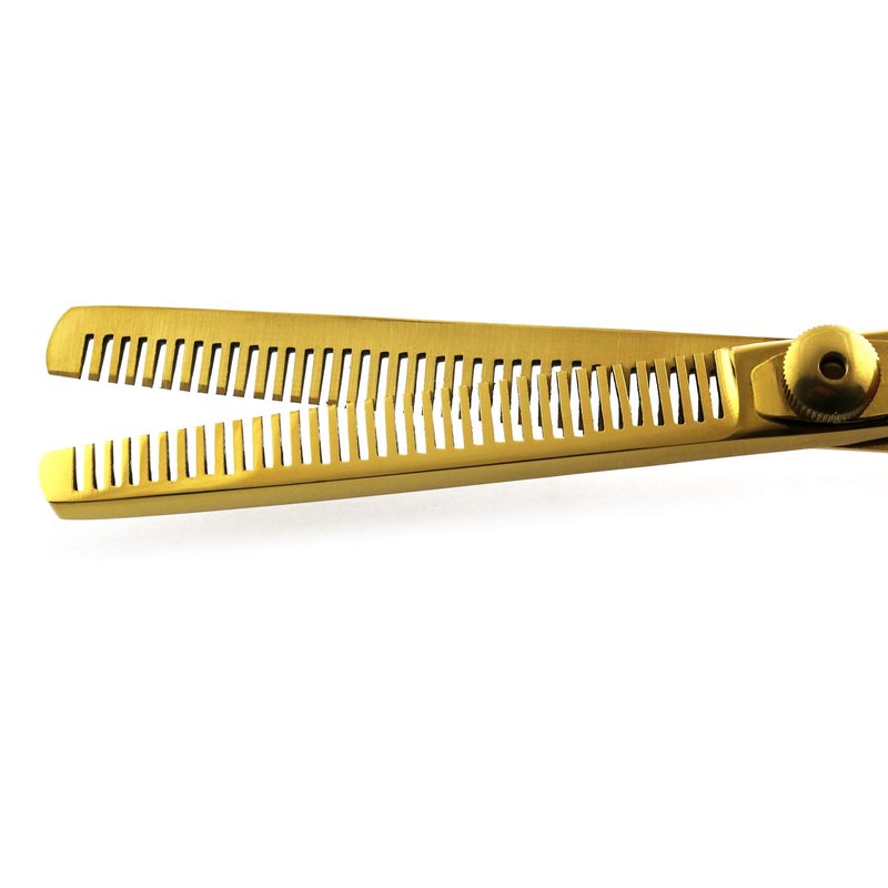 Direct Instruments Professional Barber Salon Double Thinning Shears for Hairdressing, Hairstyling, Cutting scissors. Gold Color. Size: 6 Inch