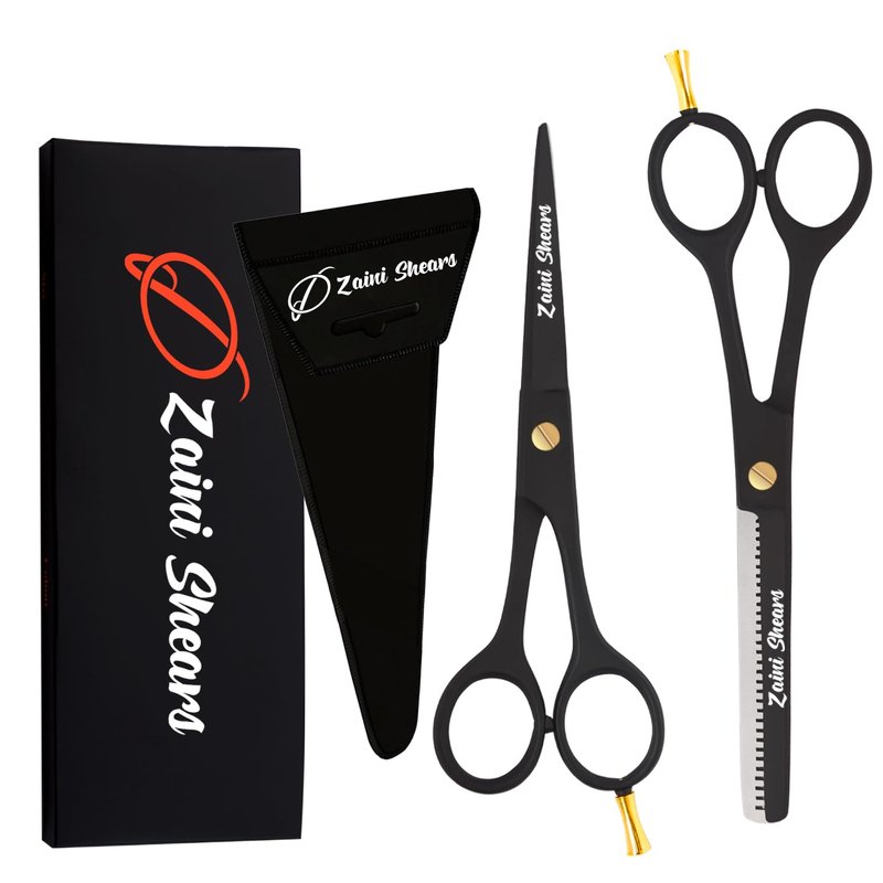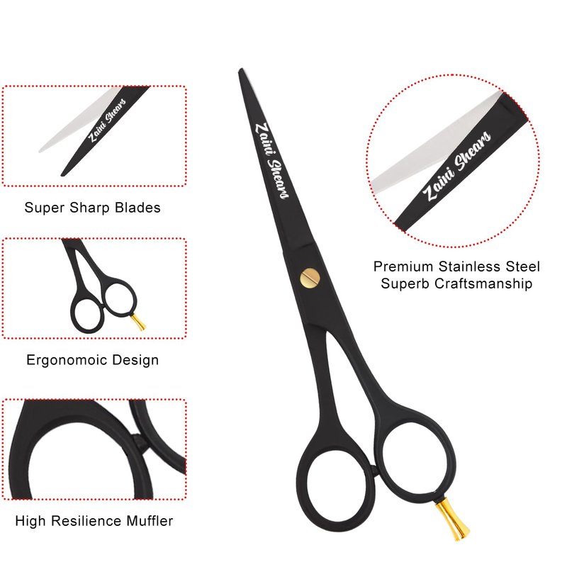 - [ MATERIAL] : Made of highest quality Carbon stainless steelThese Professional-Grade Barber Scissors Feature Razor-Sharp Blades for Even Trimming and Thinning Without Causing Damage or Split Ends .