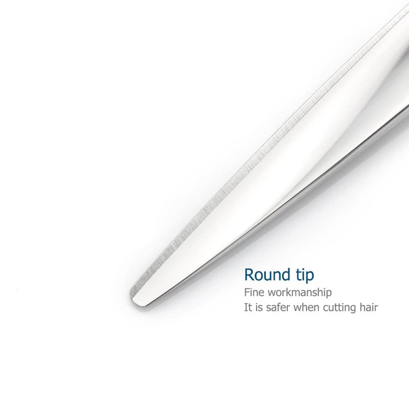 - Material: 440C is internationally recognized as one of the high-end hair scissors material with the perfect combination of high hardness and high toughness.440C hair scissors is very sharp and has excellent edge sharpness retention. Tips:The hardness of scissors is not the harder the better.The greater the hardness of the scissors,the lower the toughness.The blade of the scissors is very thin.If the toughness is small,the cutting edge collapses easily.