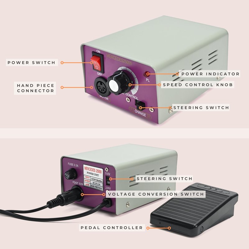 - Nail Drill Machine of 25000RPM variable speed, powerful enough to grind, sharpen, polish, sand or remove almost all kinds of nail polish, and trim thick nails