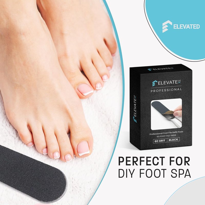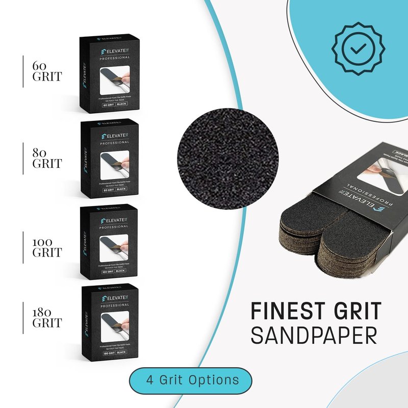 - 2 GRIT OPTIONS: The foot scrubber replacement pads by Elevated come in two grit options: 60 and 100. Both of these peel-away abrasive professional foot file refill pads come in Black.