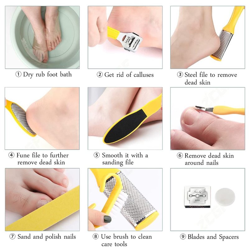 - Get Soft Feet: Our foot care kit easily removes dry, cracked skin, safely on wet or dry skin. The pedicure tools for feet set removes dead skin, calluses, and hardened skin on the heels and feet, as well as other areas where rough skin appears. Great for travel and daily life, it makes a nice gift for family and friends.