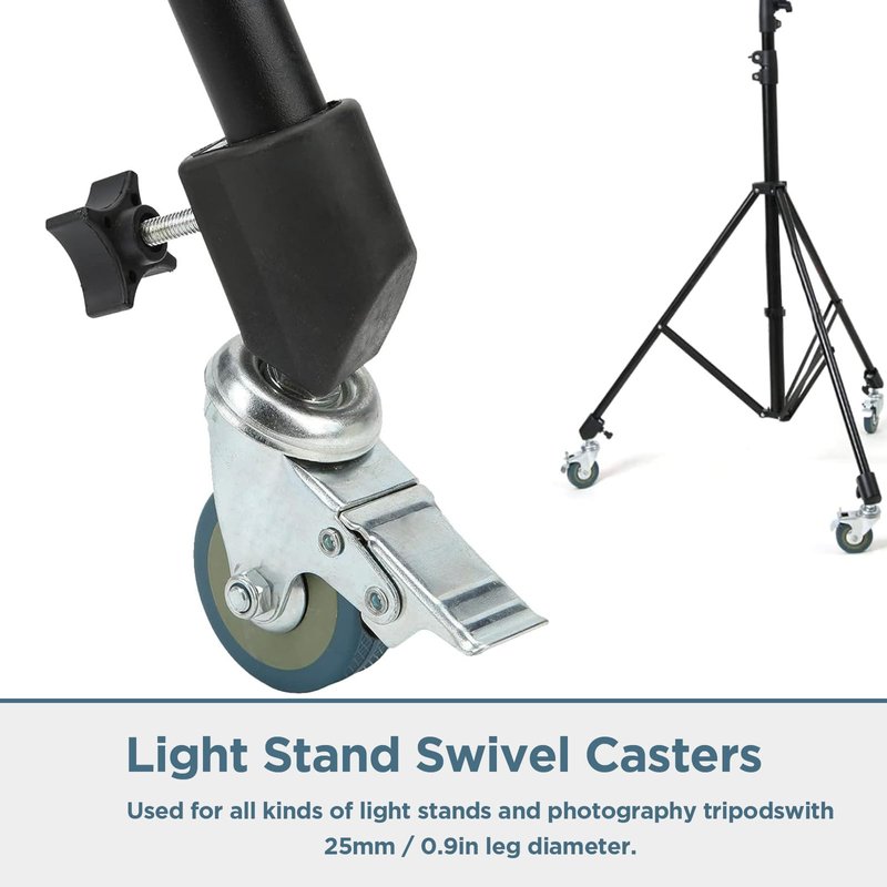 Professional Swivel Caster for Photography Light Stand Wheels Set(3 Pack),Durable Metal Constuction and Rubber Base, 25mm Moving Rolling Wheels Kit with Brake Compatible with Light Stand