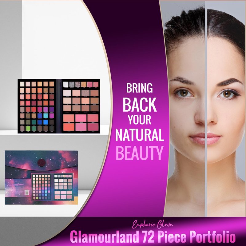 Profusion Cosmetics Euphoric Glam Glamourland 72 Piece Portfolio, Dazzle and Shine's Glamourland with Your Ultimate 72 Piece Holiday Makeup Set, Sparkle All Season With Essential Makeup Tools