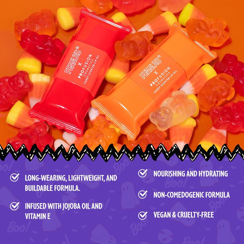 Profusion Cosmetics Peanuts Halloween Candy Crush Lip Oil Set, Nourishing Lip Tint with A High-Shine Finish, Infused With Jojoba Oil and Vitamin E