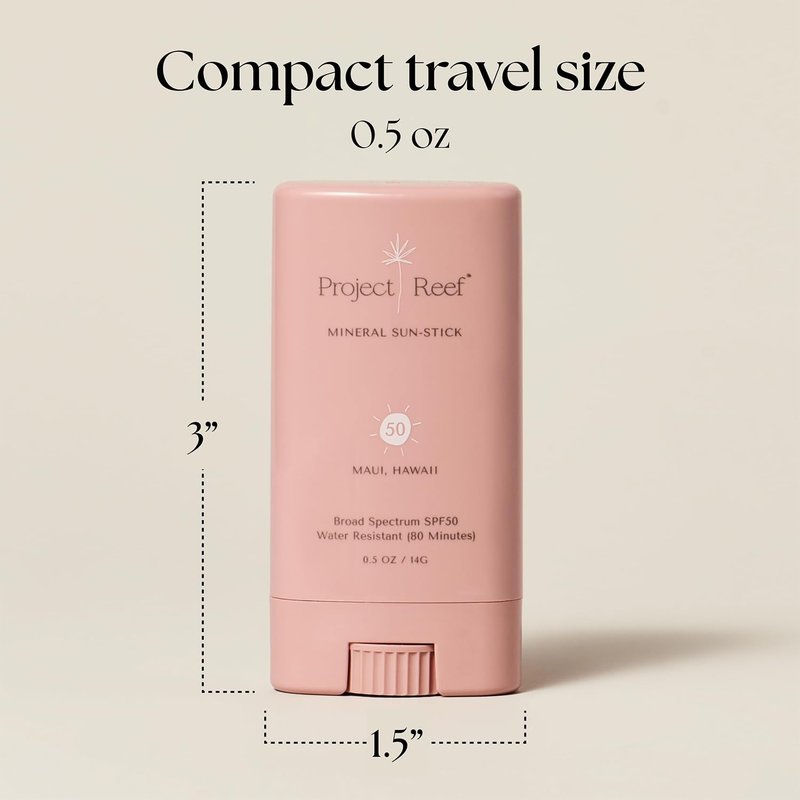 Project Reef SPF 50 Sheer Mineral Sunscreen Stick - Vegan, Reef Safe, Non-Nano Zinc, Face Sunblock Stick, No White Residue, Ideal for Travel & Kids