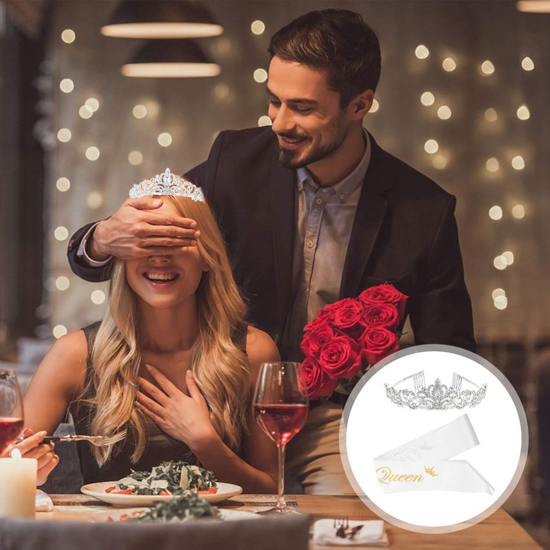 Prom Queen Satin Sash Graduation Wedding Crown with Comb Set Bridal Tiaras Party Accessories Headband Jewelry Headdress for Women Girls