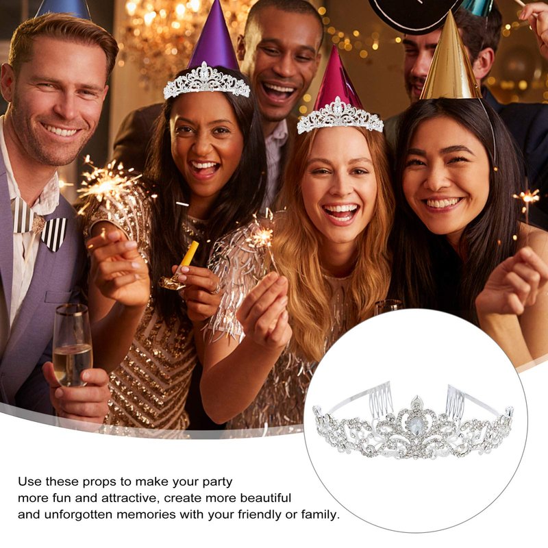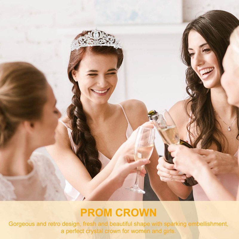 -The crown is decorated with sparkling rhinestones, presenting a sparkling, elegant, chic and eye-catching appearance.