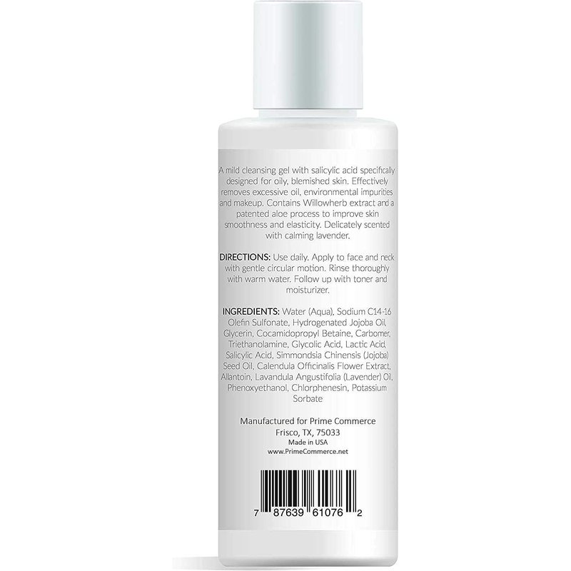 promesse Acne Control Facial Cleanser - Anti-Aging Exfoliating Wash with Glycolic & Salicylic Acid, Lavender-infused, Made in USA, Organic & Natural Ingredients