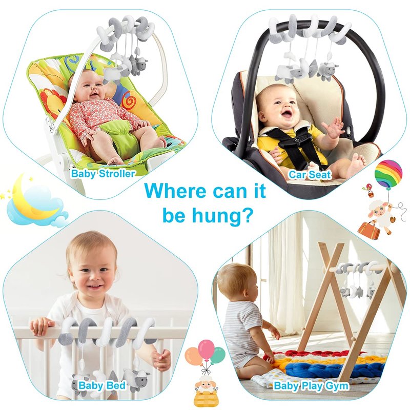 - Great Idea for Gift - The spiral stroller car seat toy is easy to store, and its portability makes it easy for people to take it. It is very suitable for newborn babies as shower gifts, birthday gifts, etc. with it, the baby will have a companion toy
