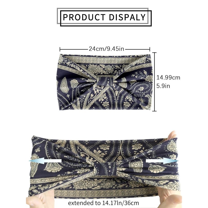 - PERFECT FIT: With a width of 9.5inches and height of 5.9inches, these headbands are designed to fit most head sizes comfortably. They can be worn narrow or wide by folding, making them perfect for any hairstyle.