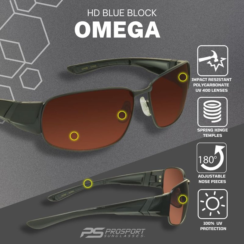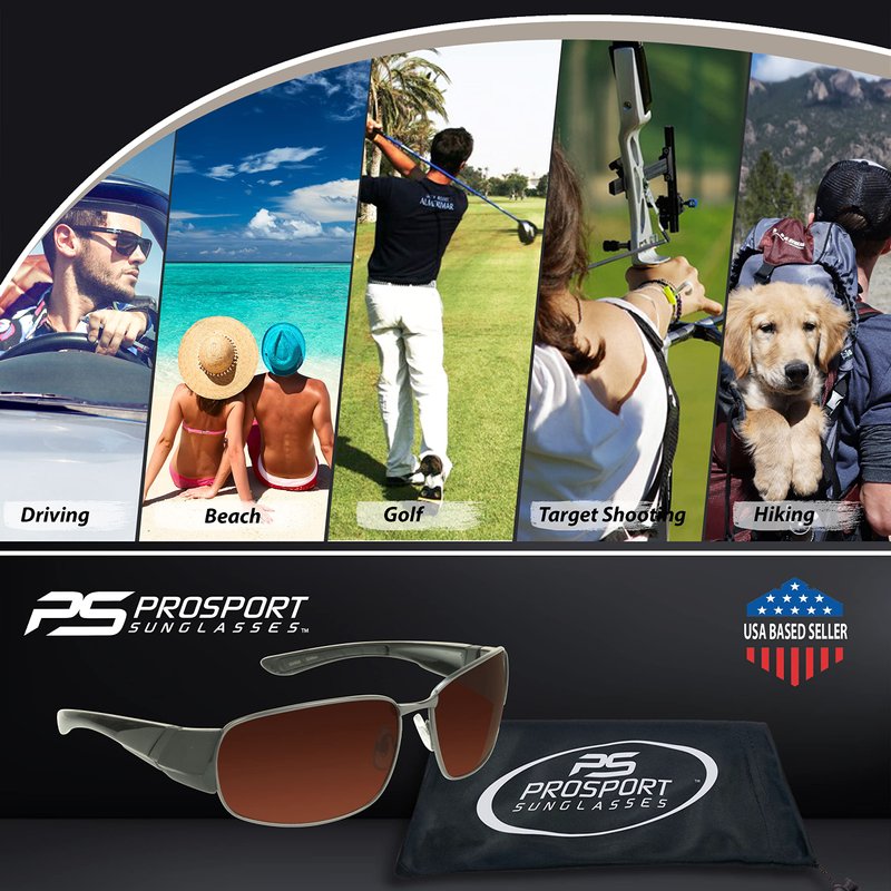Experience High Definition - HD Color Contrast Clear and Soothing Vision with proSPORT outdoor metal framed sunglasses! What do we mean by High Definition? proSPORT Copper HD lenses filter out the blue lights in the UV spectrum, which causes haziness; leaving a clearer and crisper view. HD lenses, also known as Blue light blocker lenses or Blue Blocking lenses are great for all sports activities including golf, cycling, running, boating, fishing, tennis, baseball, driving, walking and motorcycle riding to reduce glare and provide high color contrast. Once you try our HD lenses, chances are you won't go back to smoke lenses again!