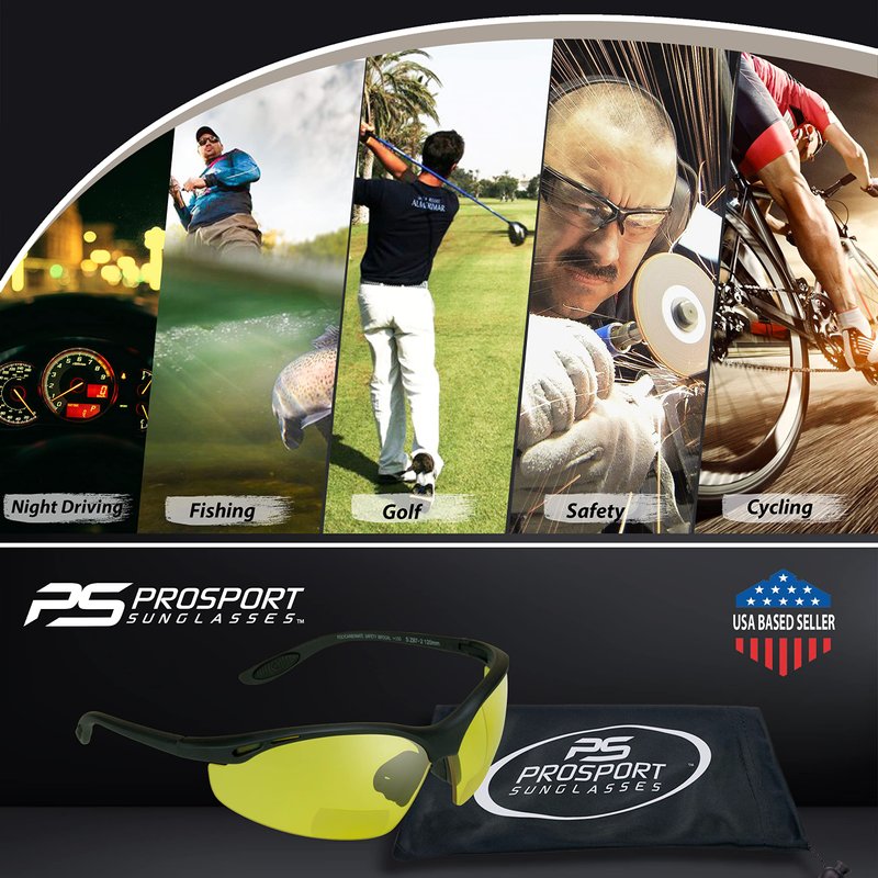 proSPORT Safety Bifocal Glasses Yellow Lens +1.50 z87 Semi Rimless Night Driving for Men and Women