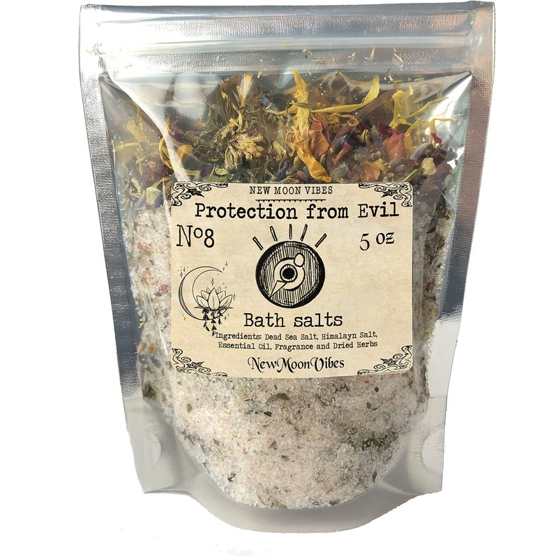 Protection from Evil Essential Oils Herbal Spell Ritual Bath Salts with Real Herbs Botanicals Infused Protect from Jealousy Gossip Forces Calming Create Peaceful Positive Space