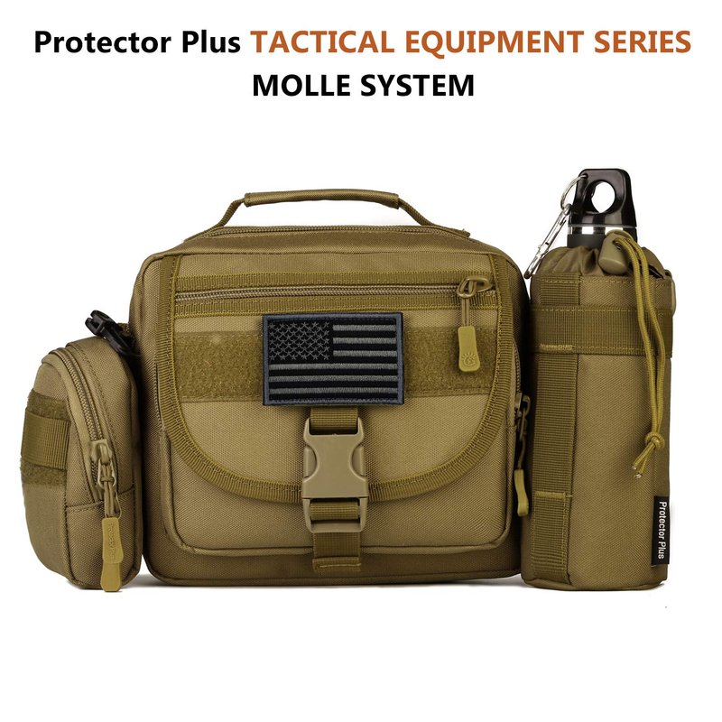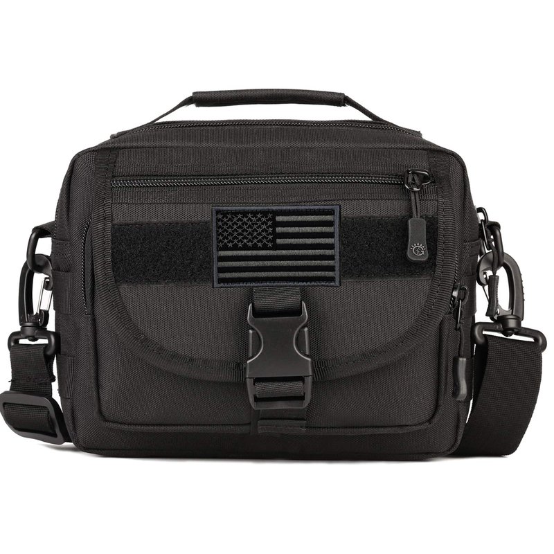 Protector Plus Tactical Messenger Bag Men Small Military MOLLE Crossbody Pack Tool Briefcase Assault Gear Handbags Outdoor Utility Carry Satchel (Patch Included), Black