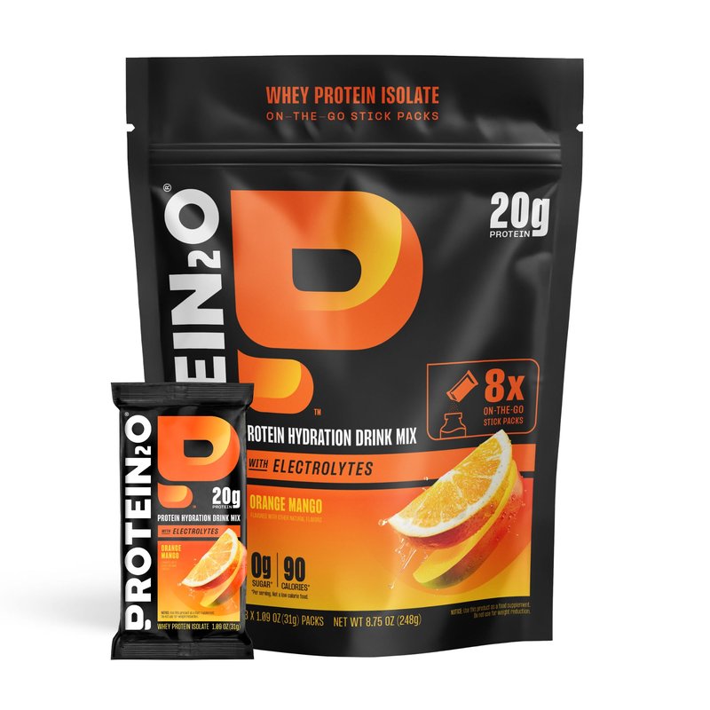 Protein2o 20g Whey Protein Isolate Clear Protein Powder, 370mg of Electrolytes, Vitamins B5 & B6, Sugar Free, Orange Mango, 8-Pack