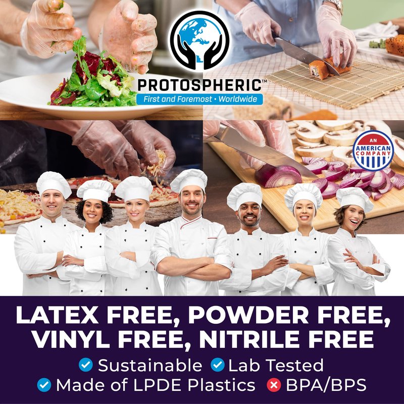 Protospheric Disposable Gloves for Food Prep - Super Poly Kitchen Grade Food Safe Gloves - Perfect for Cooking and Serving