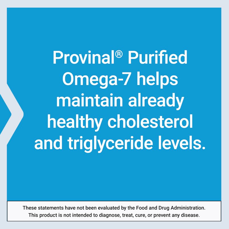 - STUDIES SHOW QUICK RESULTS - Provinal Purified Omega-7 contains 210 mg of omega-7 palmitoleic acid to help maintain already-healthy cholesterol and triglycerides levels. It also promotes a healthy inflammatory response . In fact, studies show a daily dose of 210 mg can offer the support you're looking for in as little as a month.