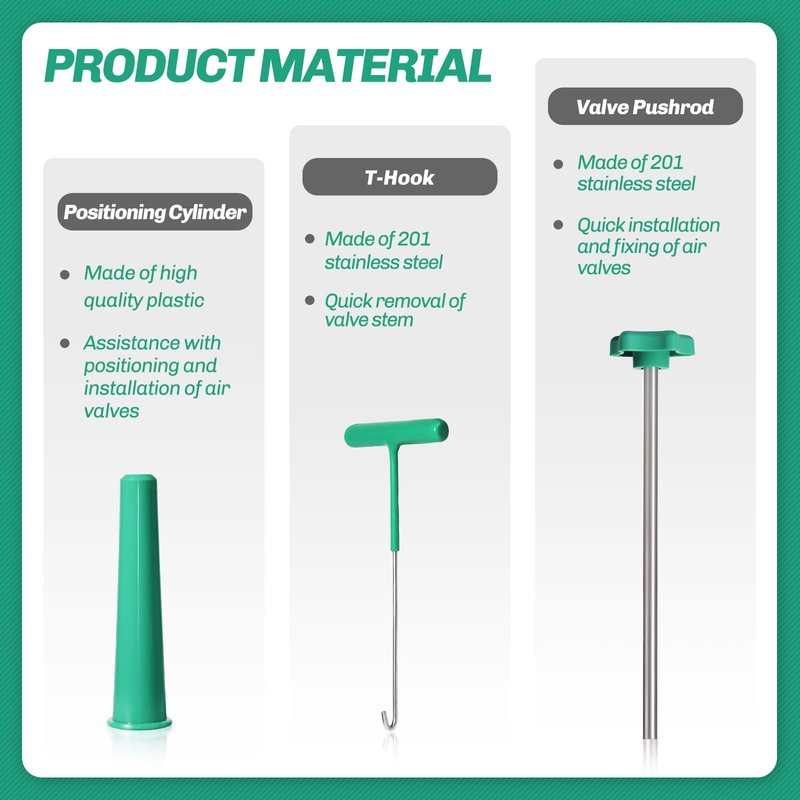 - ★【Useful Toolkit】Each tool in the kit will perform its full function. The T-hook will quickly pull out the damaged valve stem, the tapered positioning tube will provide positioning when the new valve stem is installed, and the push rod will push the new valve stem into the valve hole and hold it in place.