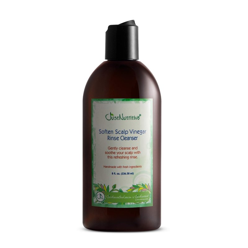 Our Soften Scalp Vinegar Rinse Cleanser dissolves the residue and cleanses your scalp, leaving it fresh with hair that is manageable, sleek, with more volume. This vinegar rinse cleanser deep cleanses possible toxins away from the follicles and the scalp. Hair is hydrated and vibrant, helps detangle, strengthens hair, and helps prevent damage. It provides your hair and scalp with many benefits. It restores manageability, luster and volume to hair and brightens color and shine. This Vinegar Rinse Cleanser is free of harsh detergents like Sodium Lauryl Sulfate or Sodium Laureth Sulfate. No Parabens, No Mineral Oil, No Artificial Colors, No Petroleum. At Just Nutritive, we use no animal ingredients or do any animal testing. We assure you that every bottle is handmade with love in the USA and made of Earth's purest ingredients. Together, let's nourish with nature.