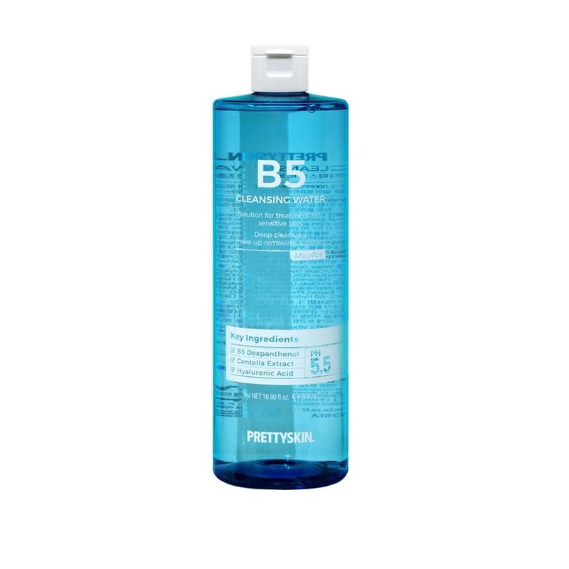 PS.PRETTYSKIN low PH 5.5 Vitamin B5 Micellar Cleansing Water 16.9 fl.oz.(500ml) with Centella asiatica extract, Hyaluronic acid for Deep cleansing, Mild Cleansing