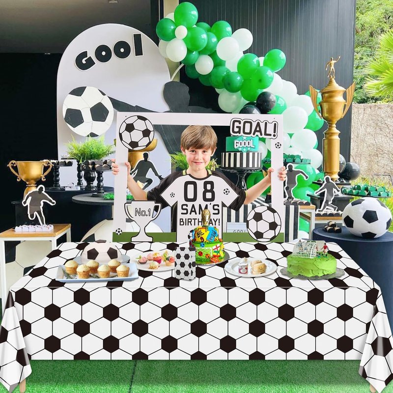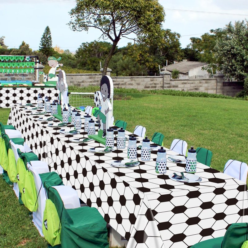 - Stylish Soccer Pattern Design: Our soccer tablecloths feature a charming black and white color scheme of real footballs, and an emerald green lawn as the background(both styles can be mixed and matched at will). This festive touch adds a sense of excitement and joy to your soccer-themed party, making it the perfect backdrop for fun-filled celebrations.